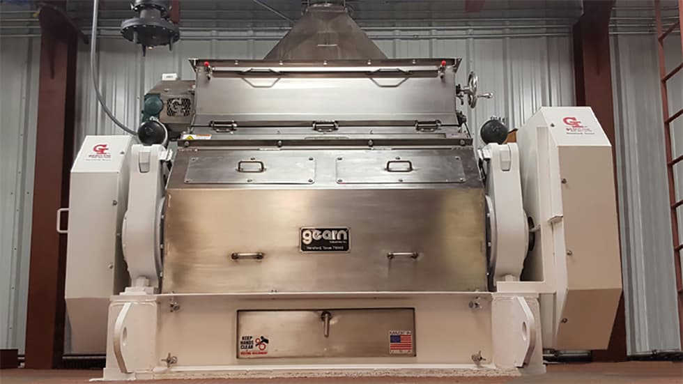 В процессе измельчения, после прохождения через парораспределитель, продукт поступает в плющильную, вальцовую или молотковую дробилку. Плющильная дробилка проталкивает продукт через два ролика для образования хлопьев. Вальцовая дробилка раскалывает продукт. Молотковая дробилка - это рол с набором молотковидных инструментов внутри - продукт проходит через него и образует порошок при выходе.